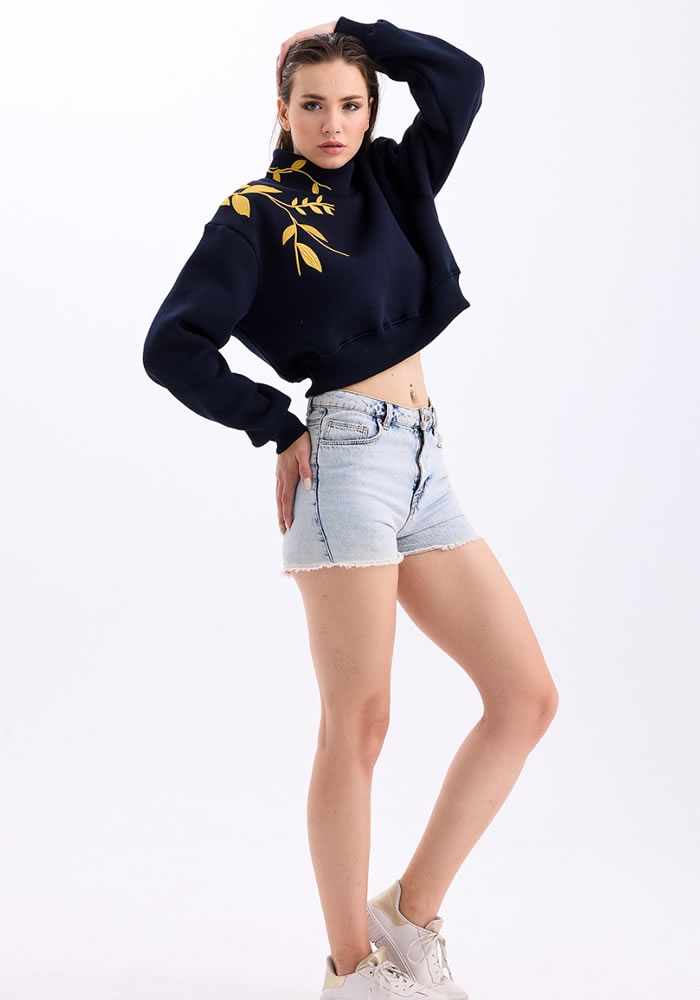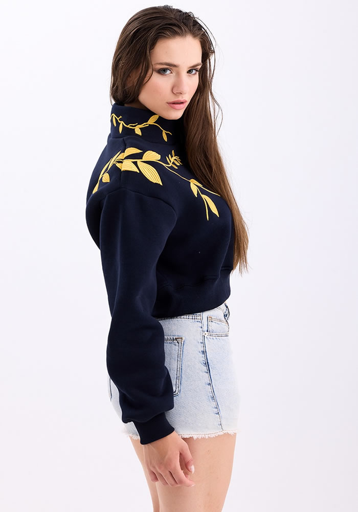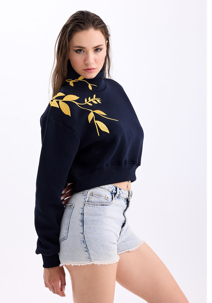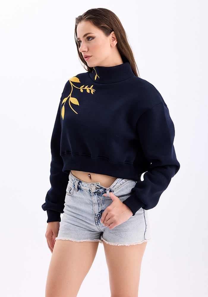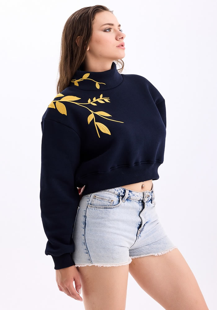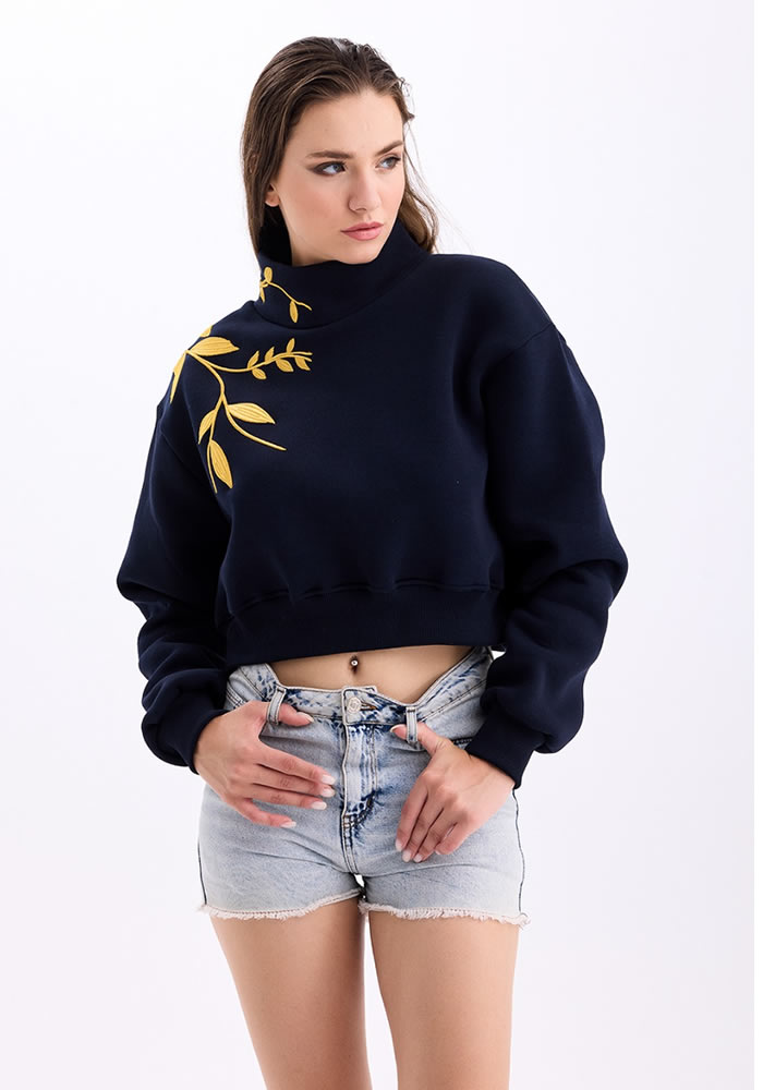 3 iplik -Uzun kollu - Siyah renk -Nakışlı